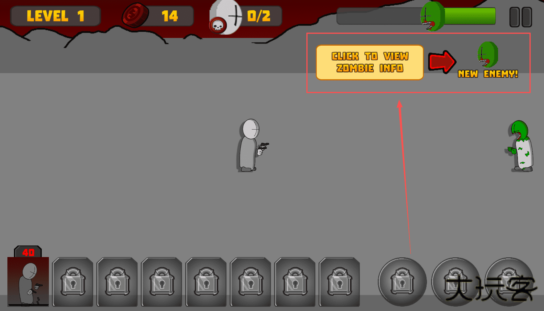 3、在游戏过程中,有时会弹出提示框,比如“点击查看僵尸信息”或“新敌人出现”。
