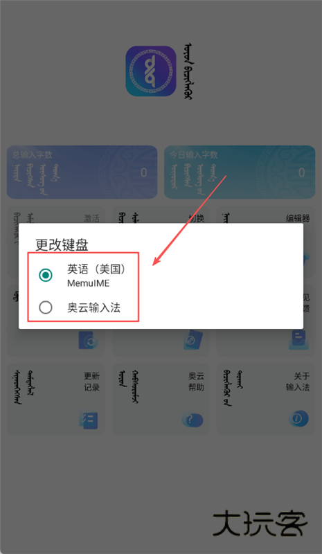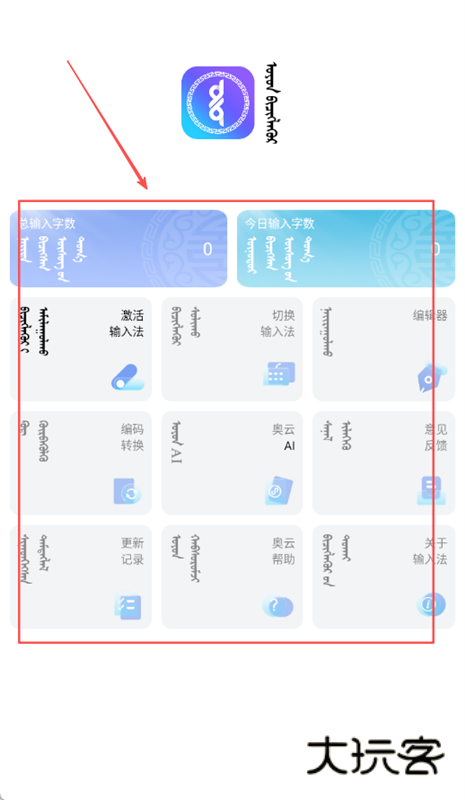 1、打开奥云输入法应用程序并进入主界面,点击激活输入法按钮,进入输入法设置与管理界面。