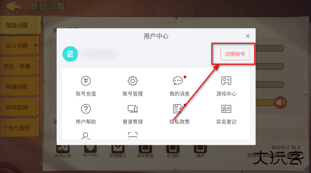 3.接着点击切换账号。