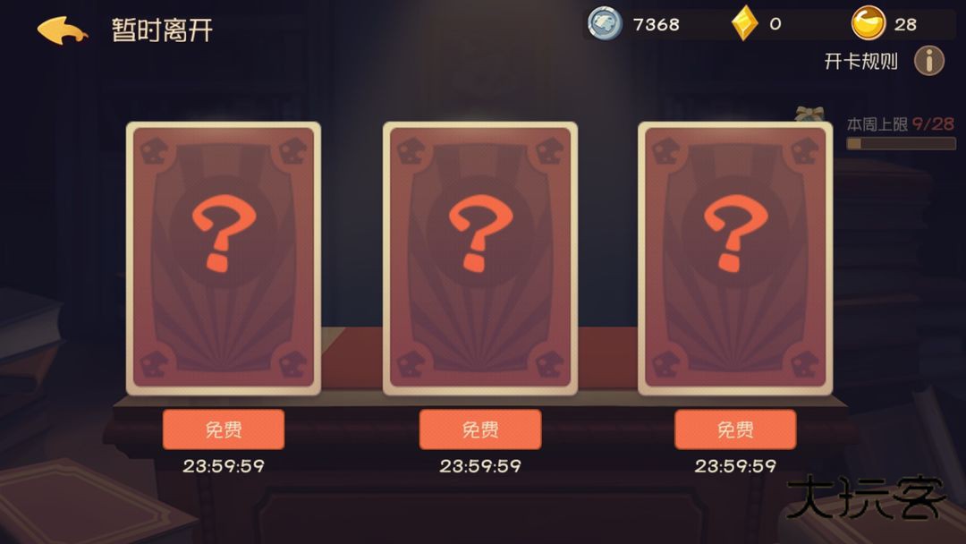 3.知识卡开卡规则:250点开3张,有一定几率出现金色背光,↓图可以对比一下,没有金背光开出来都是普通卡,有金色背光是必定会出现A卡S卡的,并且A卡S卡出现数量不一定(也可能开3张S滑稽),下面的倒计时是消失时间,不是免费开卡倒计时。