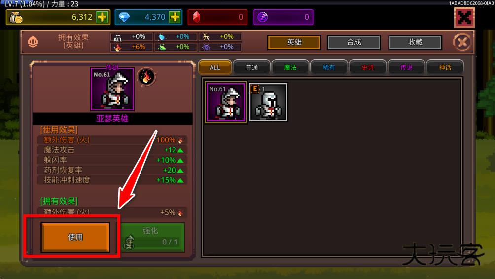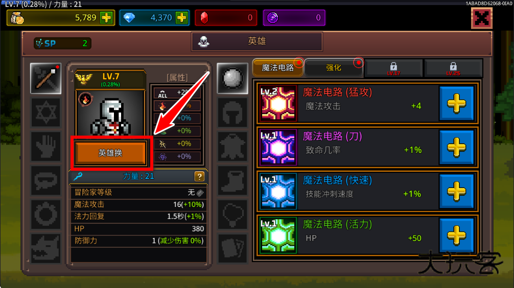 在英雄界面可以为你的角色技能进行强化升级。