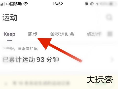 1.首先打开keep软件,然后点击界面上工具栏的“跑步”标签