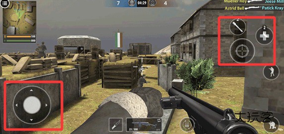 4、进入战场后,滑动屏幕左侧控制移动方向,右侧区域负责瞄准与射击。两者配合能助你有效攻击敌人并躲避伤害。