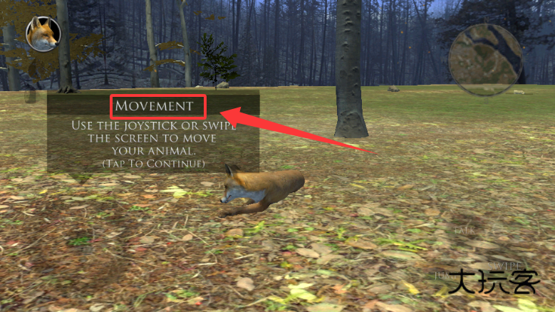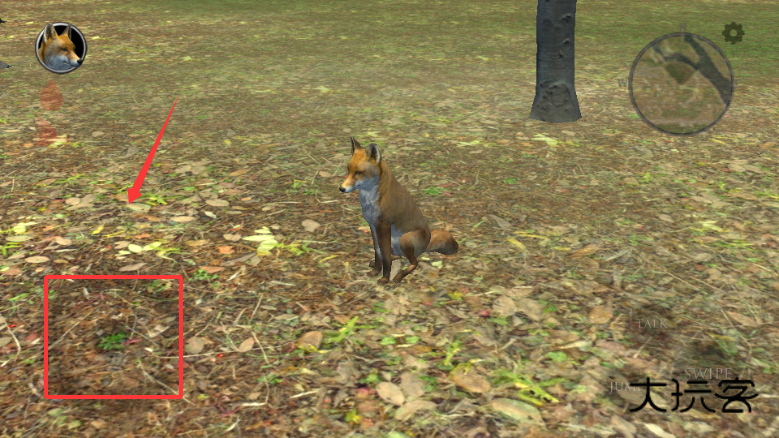-摇杆控制你的狐狸行走,在寻找食物和资源的相应过程中;