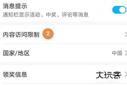2、进入“个人中心”后,点击“设置”,可看到有“访问内容限制”;