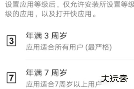 3、然后在应用等级页面,我们可以看到目前分为3周岁、7周岁以及18周岁等多个年龄等级;