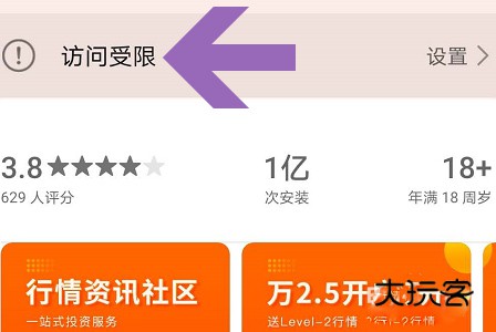 5、开启了访问限制以后,如果是不适合儿童使用的应用,那么打开以后就能看到应用上方访问受限的提示了,想要继续安装必须输入密码重新修改等级才行。