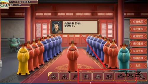 3、兵部尚书吕雄汇报军团情报,侦查他国动态掌握周边局势为征战做准备。