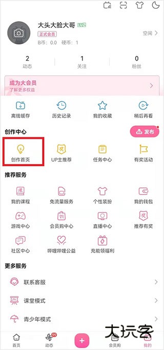 2、在个人主页中点击创作中心的【创作首页】进入到该功能中;