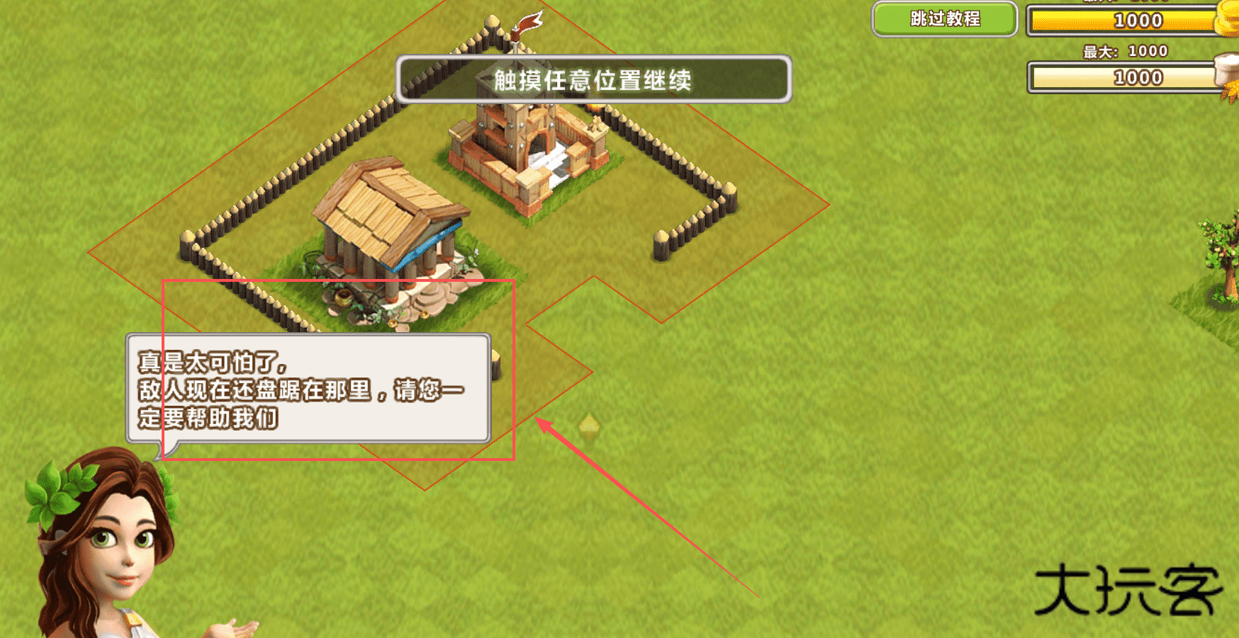 1、注意看底部有“跳过教程”和“高交”这类按钮,可能是跳过引导或进行交涉的功能,初始资源显示为1000。