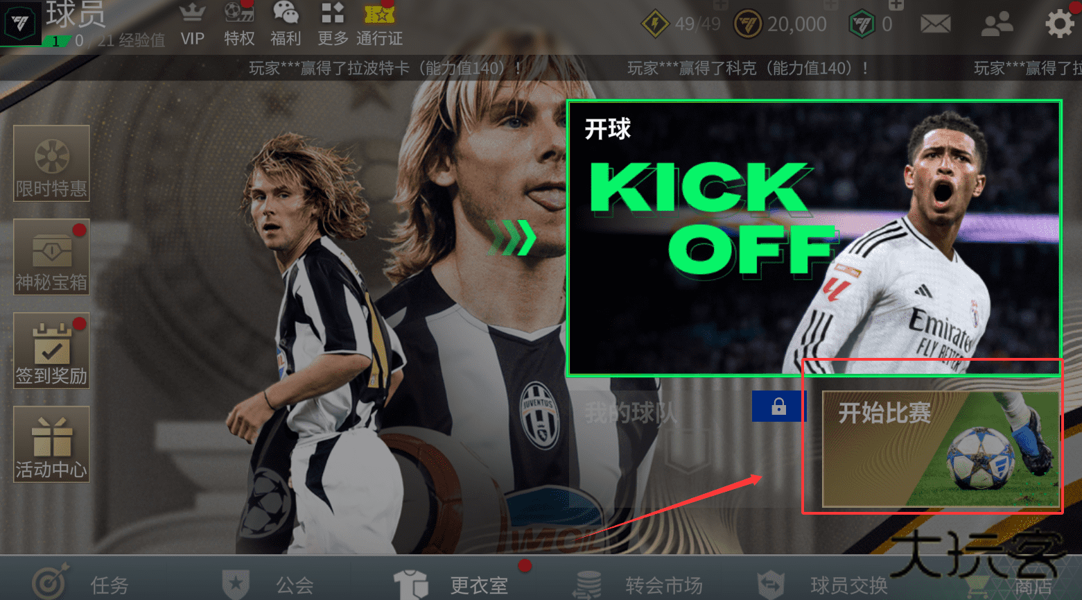3、然后呢,通过比赛和任务获取球员后,可以去“转会市场”看看,或者使用“球员交换”功能来优化你的阵容。
