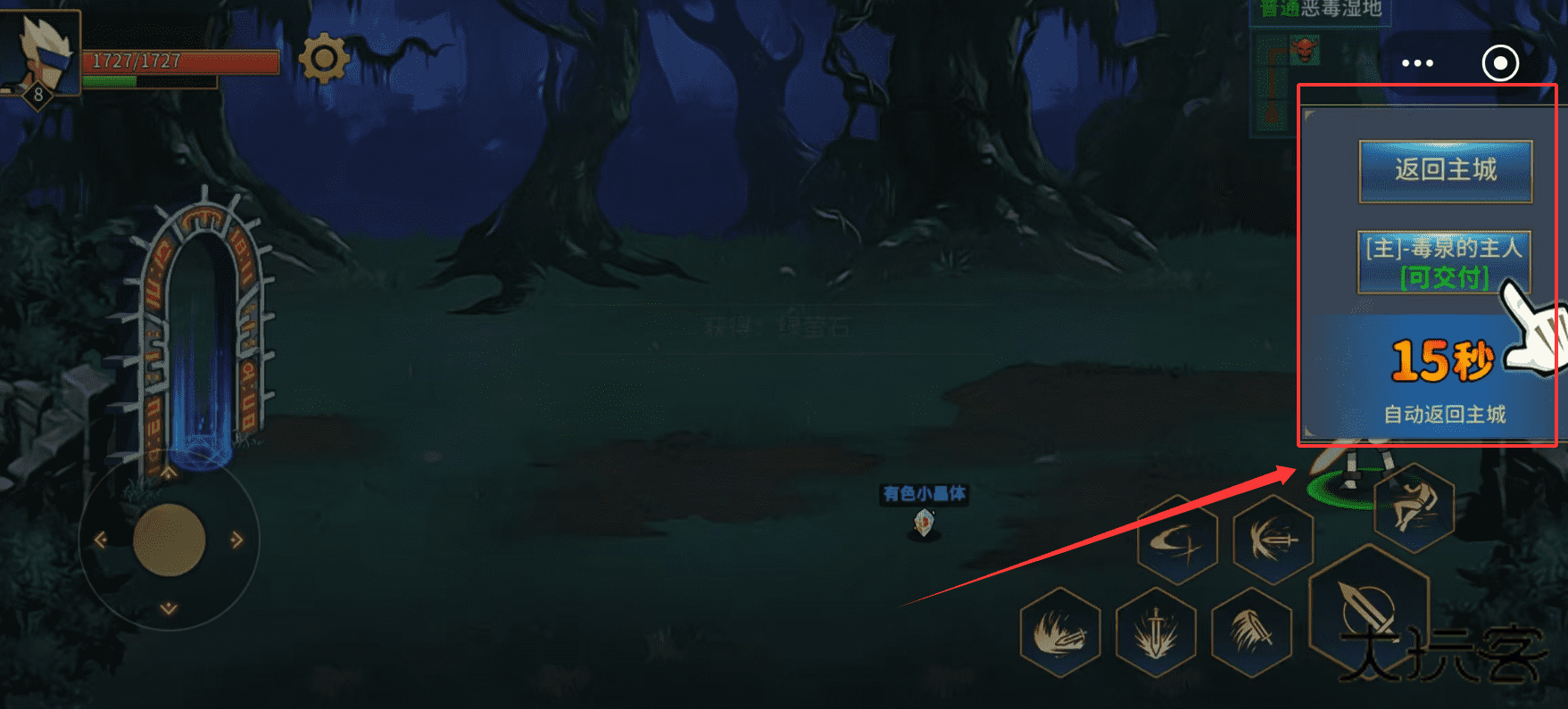 3、接取主线任务并跟随指引前往对应地图,比如图中任务提示需通关冰霜丛林,这是推进主线的关键步骤,记得按地图等级顺序挑战。
