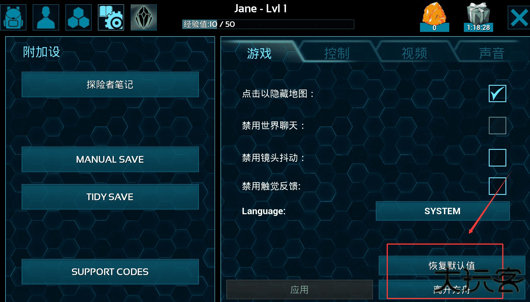 3、在设置界面调整游戏体验,比如在“游戏”选项中关闭镜头抖动和世界聊天来减少干扰。