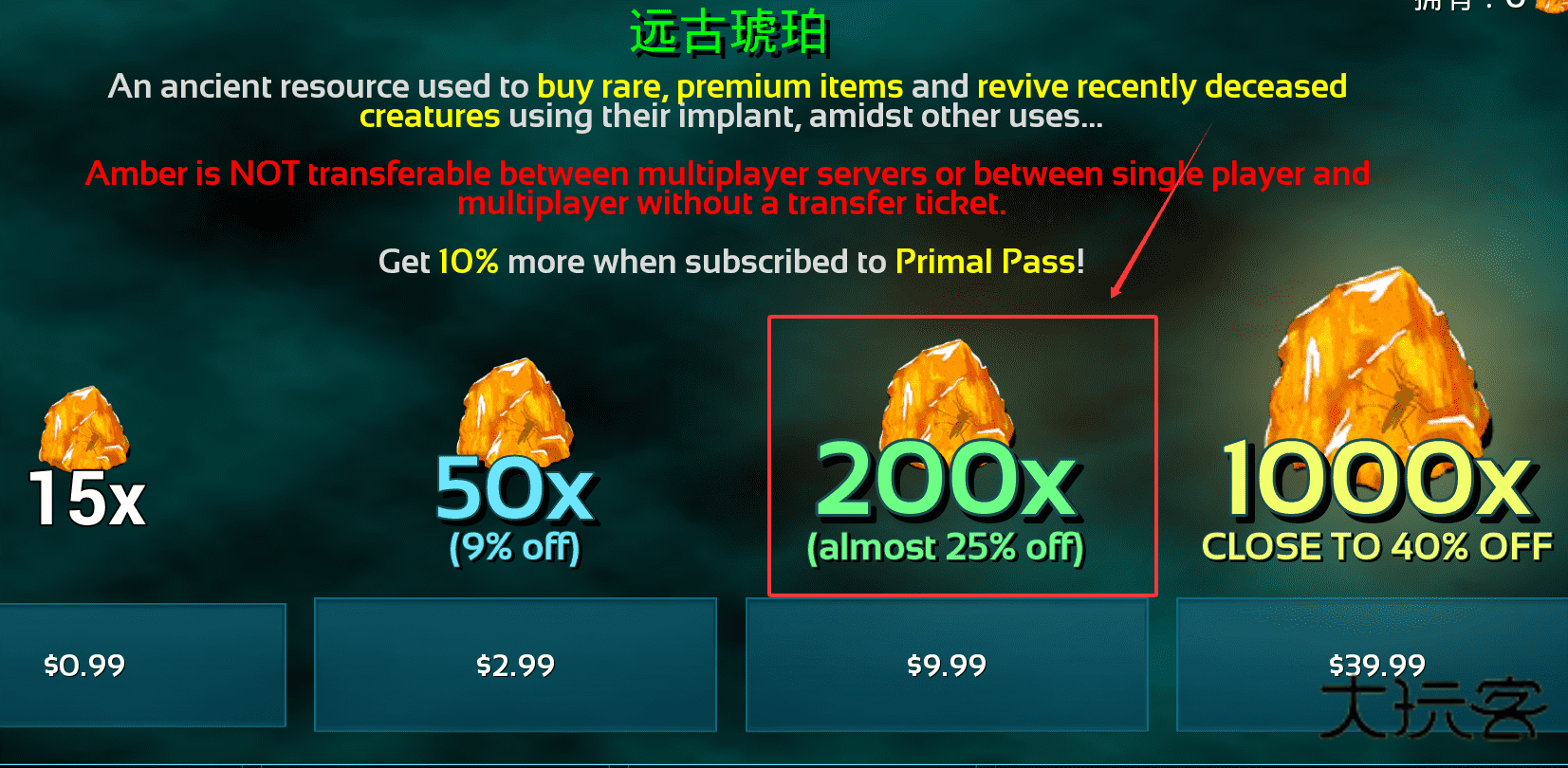 2、大额包更划算,但注意琥珀无法在服务器间直接转移,使用前要计划好用途。