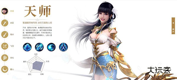 特点:天师,星辰的守护者,智通星辰启迪世间生灵,驾驭寒冰元素之力,唤天宇星外极寒彗星,魑魅魍魉皆无处遁形;天师亦是战场上的控场大师,召唤寒冰禁锢敌人,让敌人湮灭在千里冰封之下。