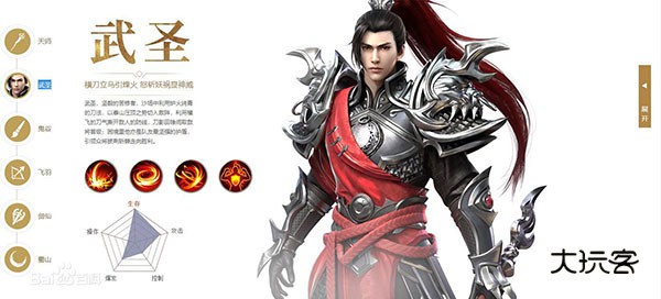 特点:武圣,坚毅的苦修者,沙场中利用炉火纯青的刀法,以泰山压顶之势切入敌阵,利用横飞的刀气撕开敌人的防线,刀影回锋间取敌将首级;困境里他亦是队友最坚强的护盾,引领众将披荆斩棘走向胜利。