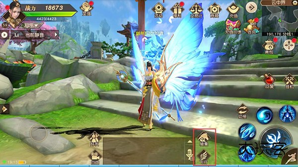 点击对话框右边的坐骑/飞行按钮即可进行飞行、乘骑状态,再次点击图标结束飞行/乘骑,值得注意的是战斗过程中是无法使用的哦!