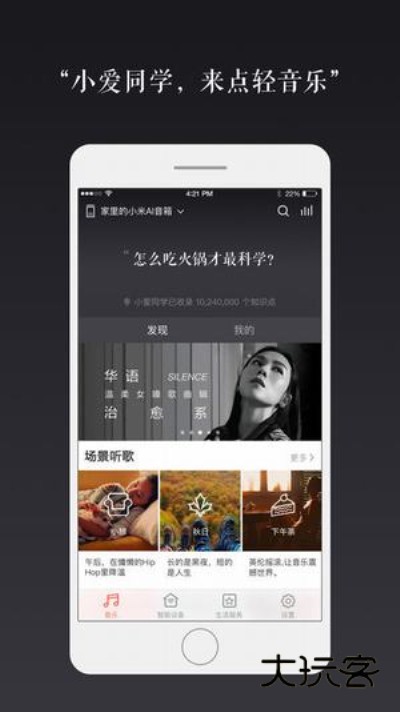 2、小爱音箱App是人工智能音箱的搭配软件,下载使用此款app可以对音箱进行远程智能操控,功能全面,可以后台运行,帮你控制家中智能家电,还可与其进行互动聊天,玩法丰富多彩,带给你极致的AI体验