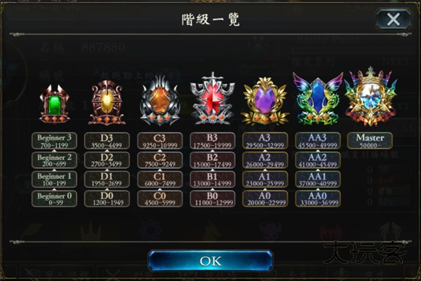 2.阶级一览:分为beginner初学者、D、C、B、A、AA、Master大师