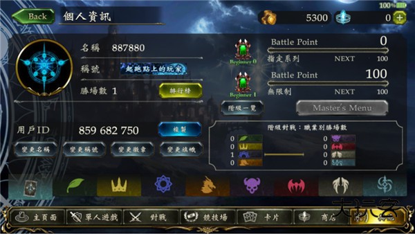 1.个人资讯:这里显示你目前对战的胜利场数以及你的用户ID用于加好友以及其他操作。