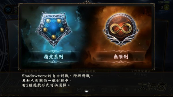 游戏阶级对战:指定系列和无限制。通常无限制难度比较大,因为无限制可以用指定系列的套牌以及无限制专属套牌(即全部卡牌)。指定系列则是相对缓和了玩家对战的难度。