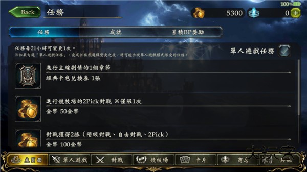 任务:任务、成就、累计BP奖励。通常金币的积累是通过完成相对应的游戏任务获取的,另外氪金消费也可以获取相应游戏消费道具。