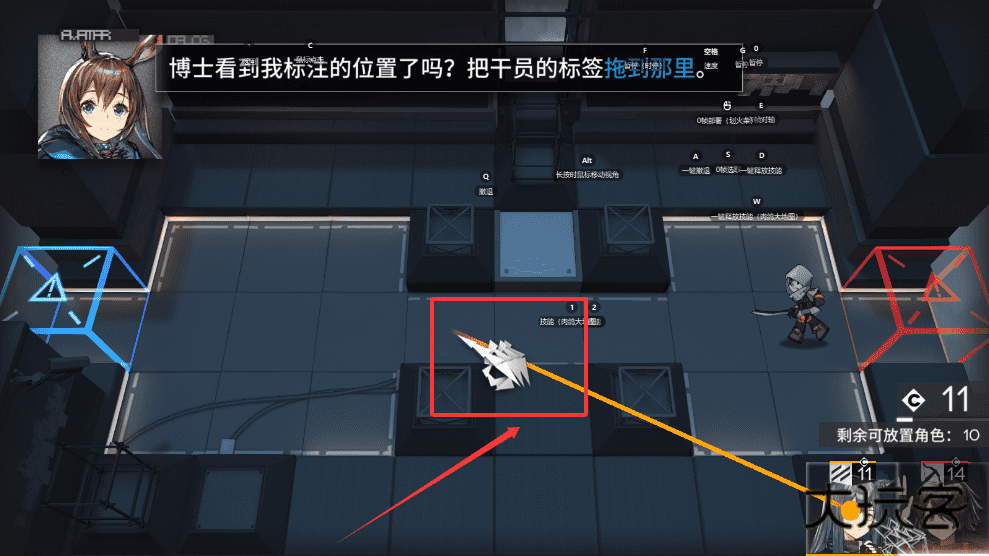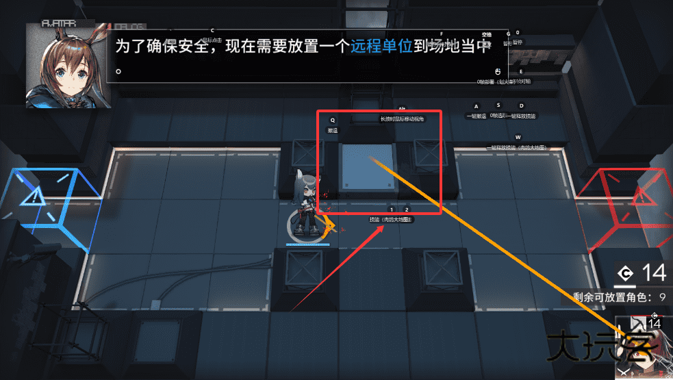 4、如果需要放置特定单位,比如远程角色,就按上方任务说明的指引,在场地中放置对应的模型。