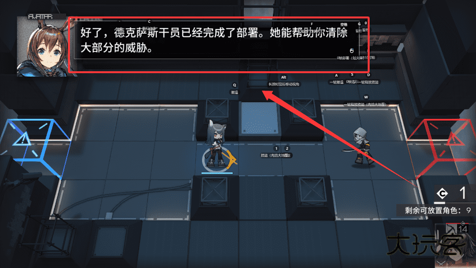 1、先进入布置界面,将干员标签拖到地图指定位置就好了,你看右下角会显示还能放几个角色呢。