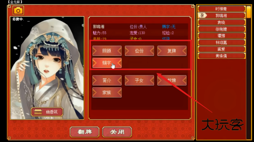4、点击临幸或陪伴增进感情,提升经验值与宠爱度促进子嗣诞生延续王朝血脉。