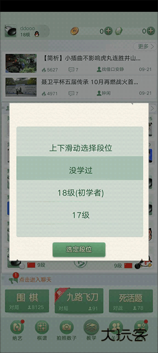正常情况下,我们是无法修改自己的段位的,大家在注册的时候段位就确定了,但是你可以通过对弈来让系统对你的实力进行一个评测,多打几局就可以回到你自己实力的那个段位了。