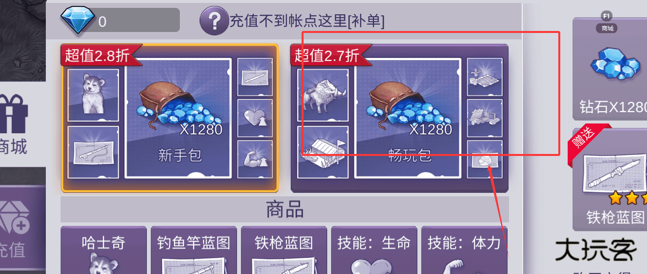 4、整体策略是,先用高折扣礼包快速获取大量钻石和启动资源,然后用钻石有选择地购买蓝图和技能书来强化角色。