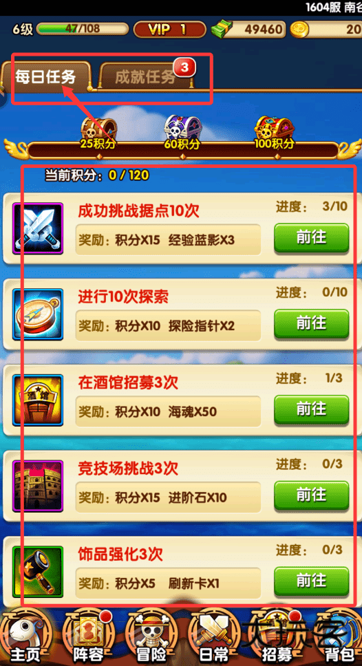 2、进入游戏主界面后,可点击“日常活动”或相关入口查看每日任务列表。任务通常包含“成功挑战据点”、“进行探索”等具体目标,完成后能稳定获得积分、经验素材等奖励。