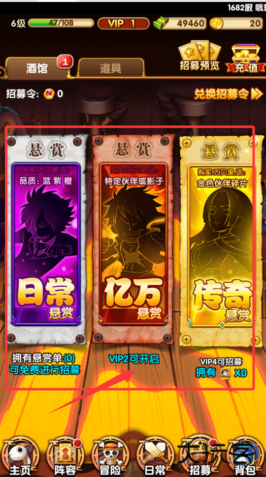 3、当等级提升至6级左右,招募系统中的“悬赏”功能会进一步开放。该功能提供不同层级的招募选项,例如“千万悬赏”或“传奇悬赏”,消耗对应“悬赏单”即有机会获得高品质伙伴。