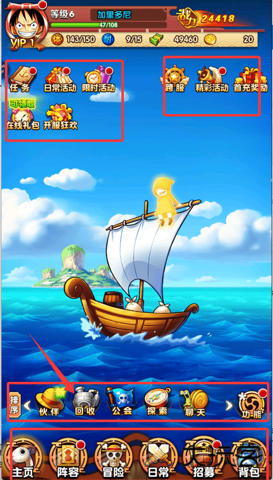 人物加成可以大幅度提升战力,这样就需要友友们在使用人物的同时,将人物的饰品收集完整,人物的收集呢,一是刷副本掉落人物碎片,通过伙伴可以合成。二是在伙伴商城中利用海魂兑换~海魂的获取来自于人物和影子的回收,同样,回收时也尽量手动添加,比如女帝的【翎羽耳坠】【烈火指轮】就应该必备,人物就是【烟鬼】+【罗宾】+【路飞】+【艾尼路】+【比比公主】 这些都是必获取的!