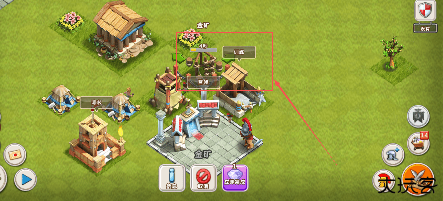 2、合理使用加速与立即完成功能。在建造或升级时,你可以看到倒计时,旁边有“立即完成”选项。
