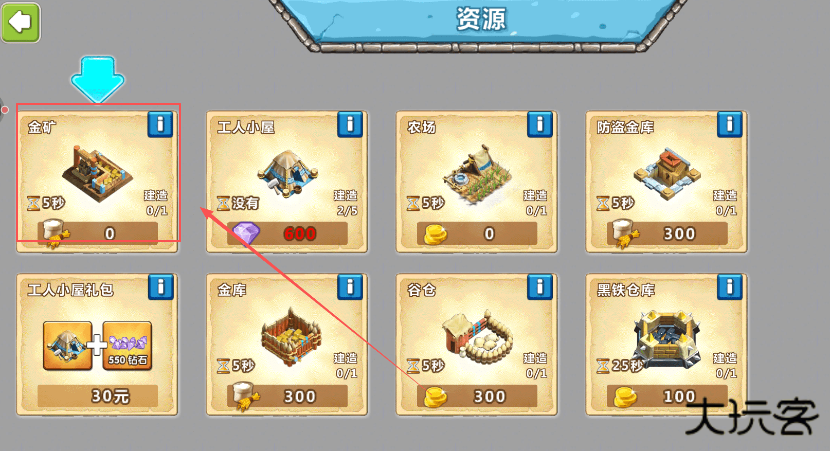 1、优先建造关键资源建筑,比如工人小屋和金矿。建造工人小屋需要5秒时间,建造完成后可以解锁更多建造队列。