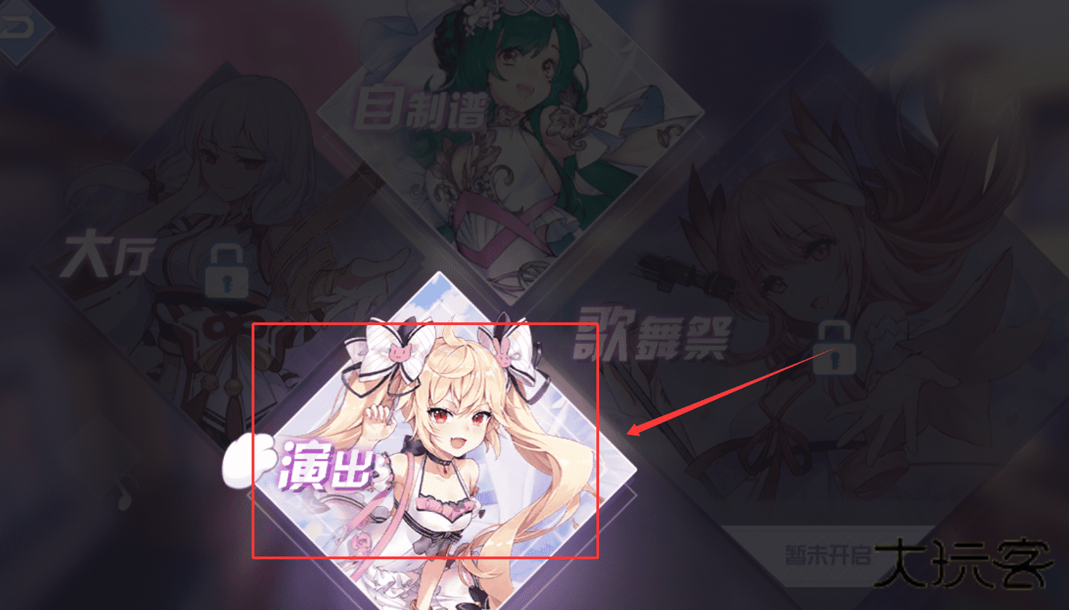 1、进入游戏主界面后,你会看到像第一张图那样的歌曲选择画面,这里有“猫猫表演秀”等歌曲。
