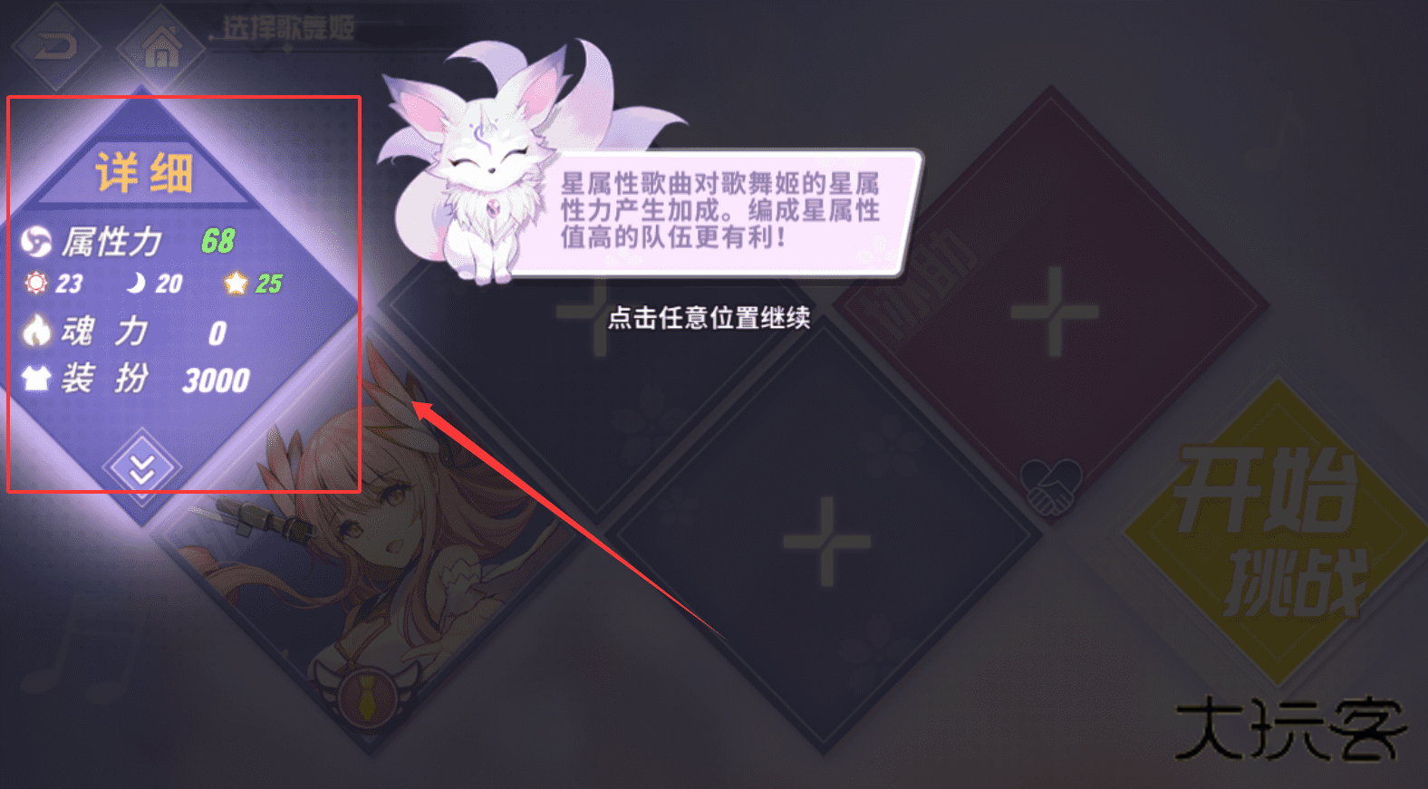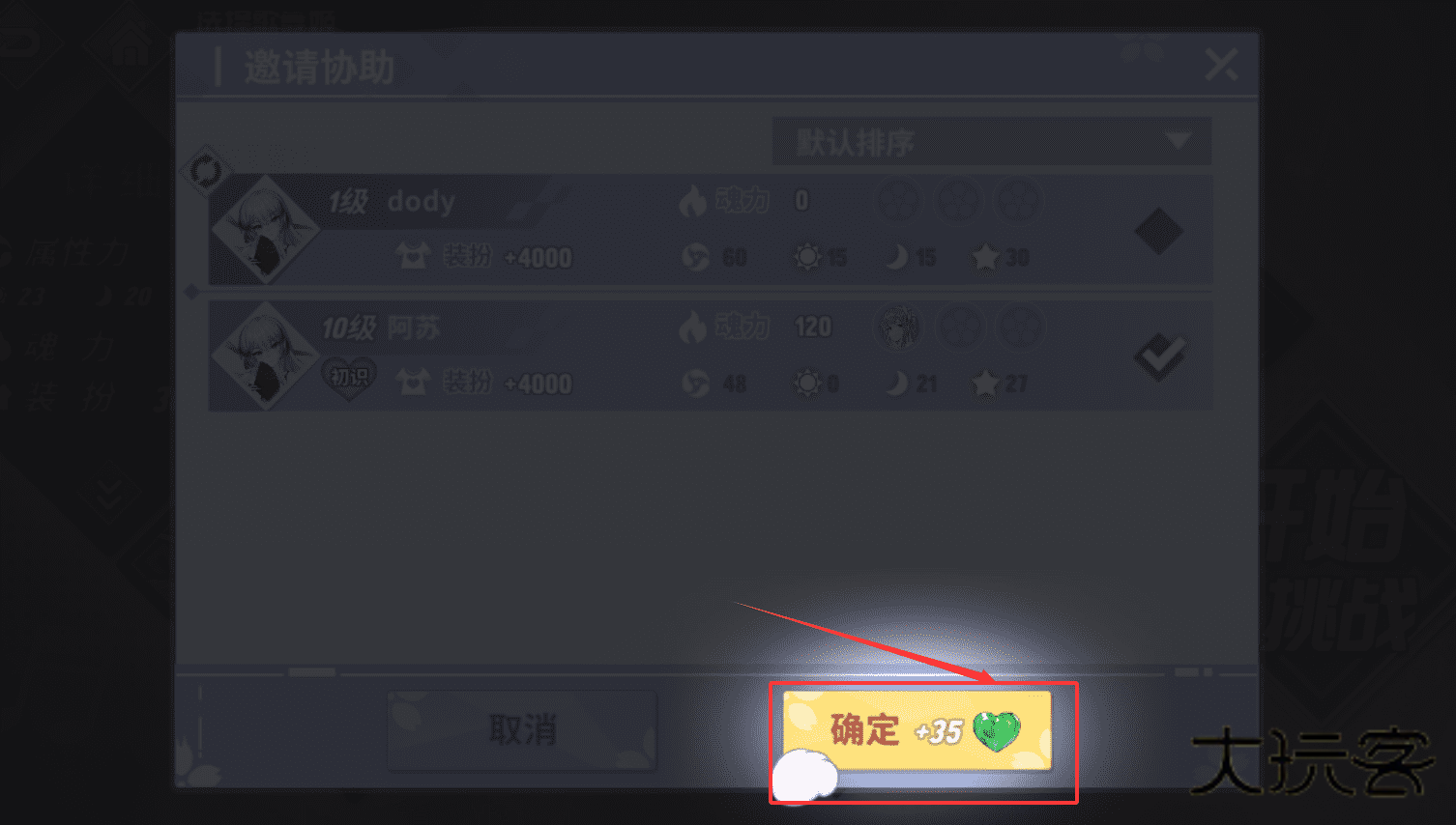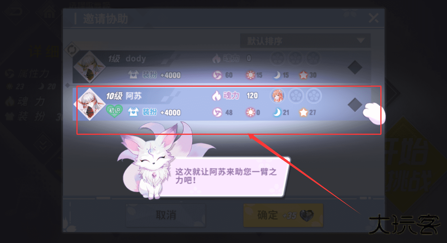 3、在确定协助者之前,别忘了查看详细属性界面,这里会展示你当前的属性力、魂力与装扮数值。