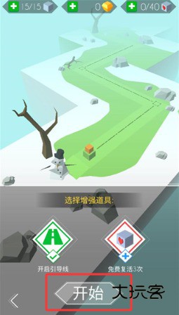 1、打开游戏后,在主界面点击开始按钮进入关卡。这时屏幕上会出现预设的轨道与可操控的线条。