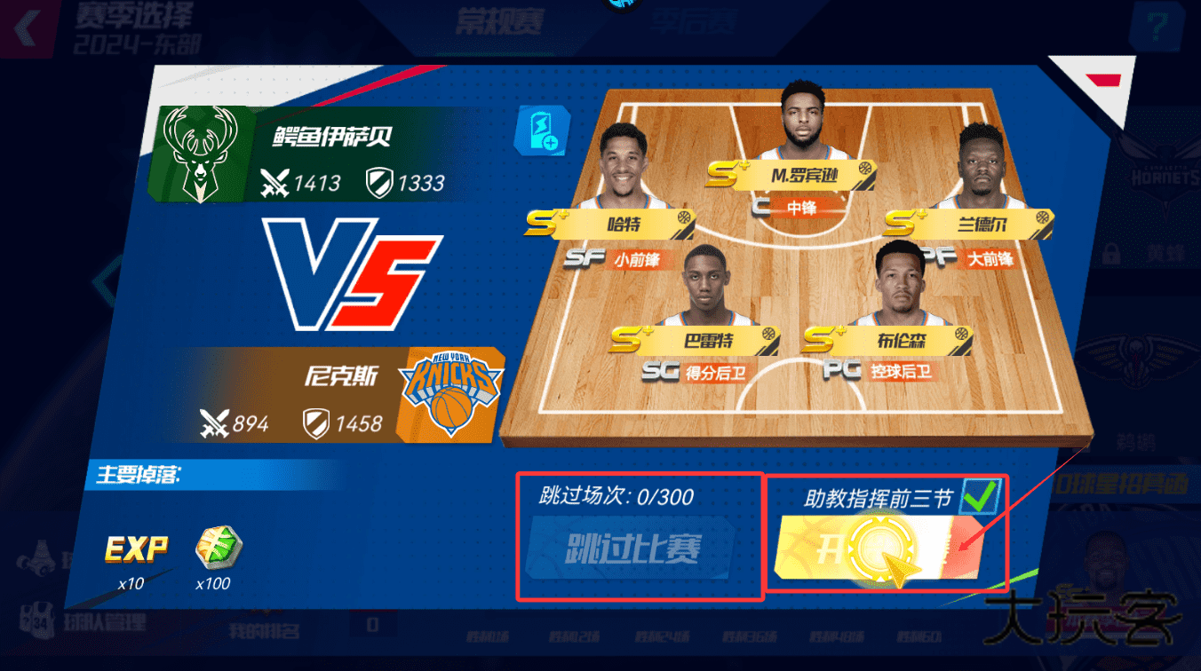 TIPS:由于常规赛结束后前八名可进入季后赛,所以若失误输掉了一盘,在不影响排名的前提下,可以忽略过去。但如果影响到前八的排名,小编建议最好还是重新挑战吧。