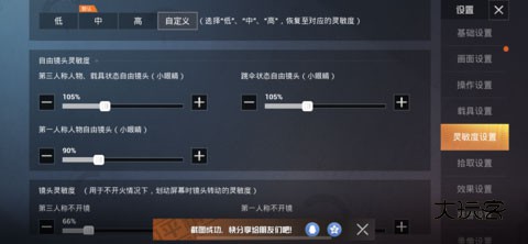 注意:因为每个玩家的手机以及操作方法不同,小编建议修改完灵敏度之后去训练场(训练场进入方法>>)试试,在进行一次微调,改到适合自己。