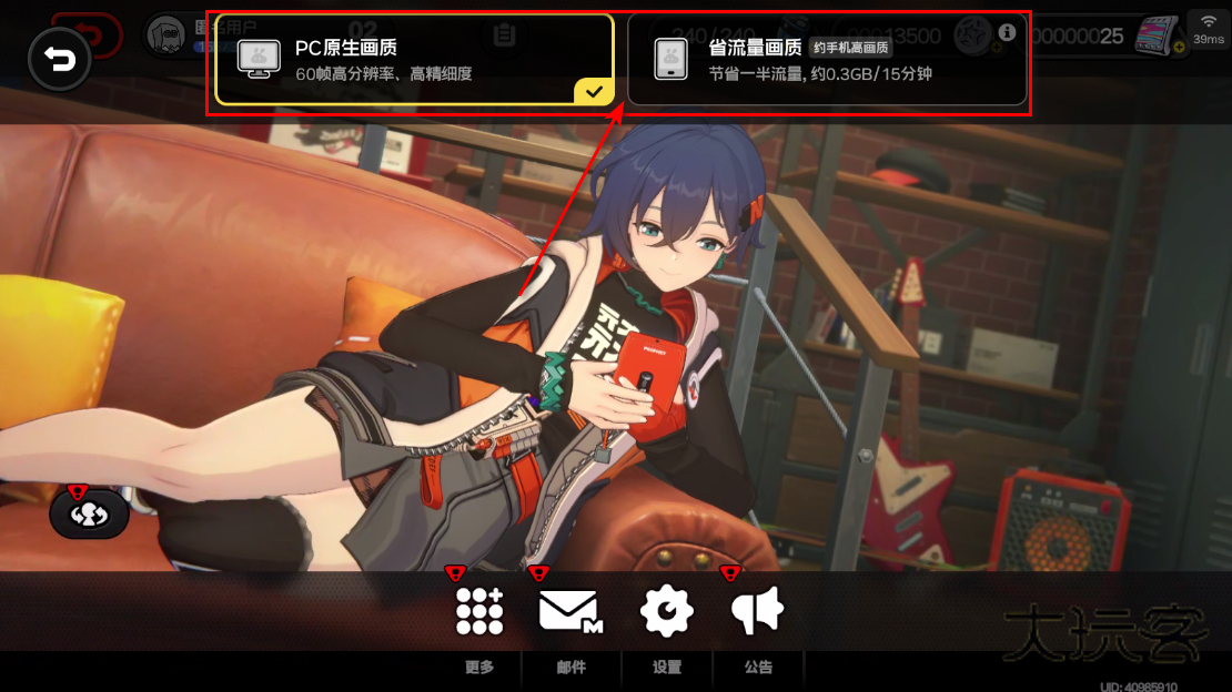 4.在这里我们可以切换成省流画质或者是使用原生画质