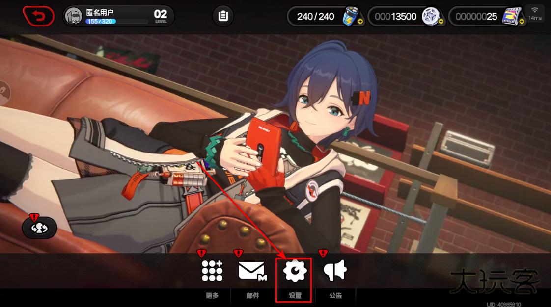 1.在游戏中点击设置