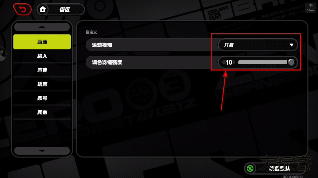 2.在画面选项中大家可以调整这些
