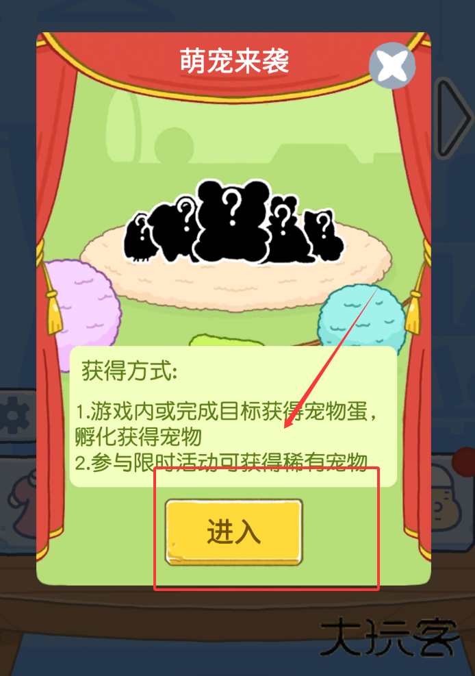 2、想获得可爱宠物的话,一般有两种途径,一种是通过玩游戏或达成目标拿到宠物蛋。