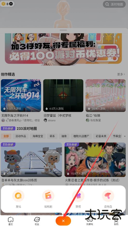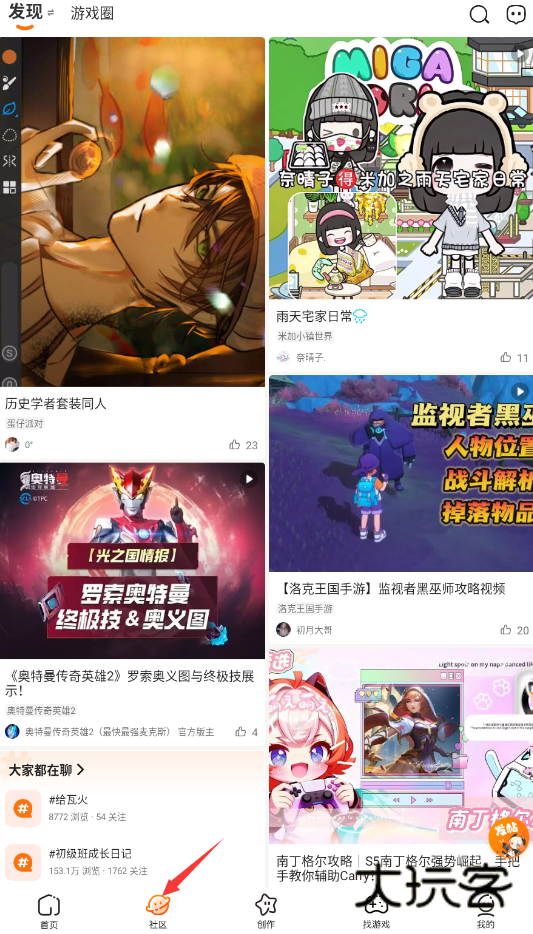 3.游玩后想分享或看攻略,可以进入“社区”或“发现”页。