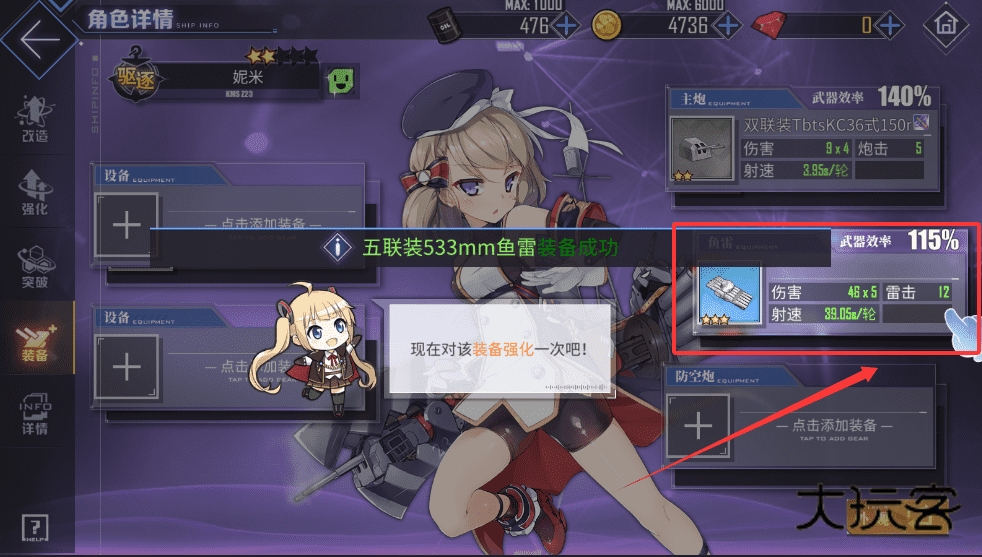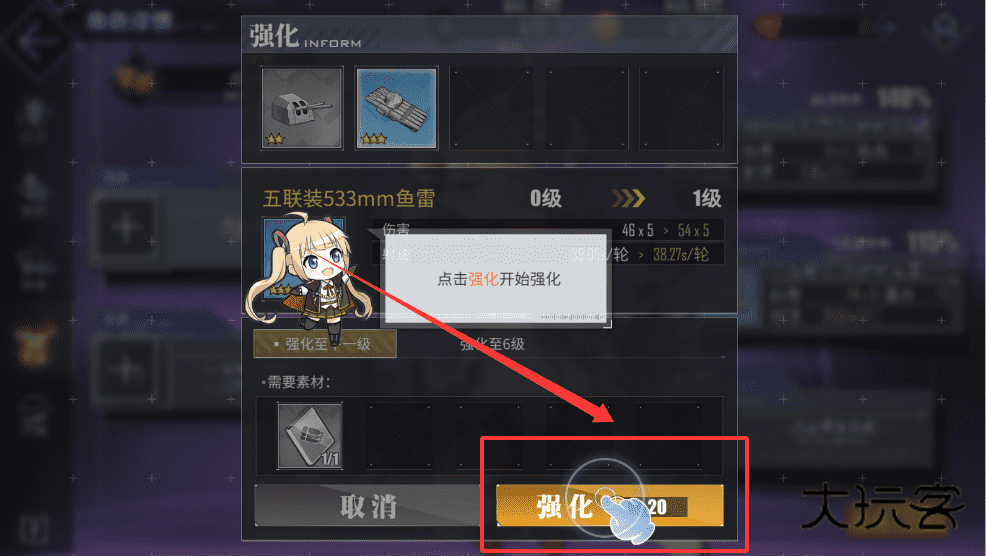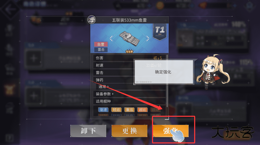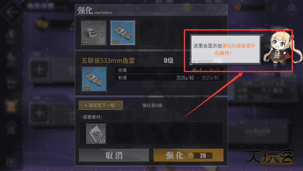 2、比如鱼雷伤害会从48x5提升到54x5,射速也会略微变化,这样你就能清楚知道强化后的效果啦。