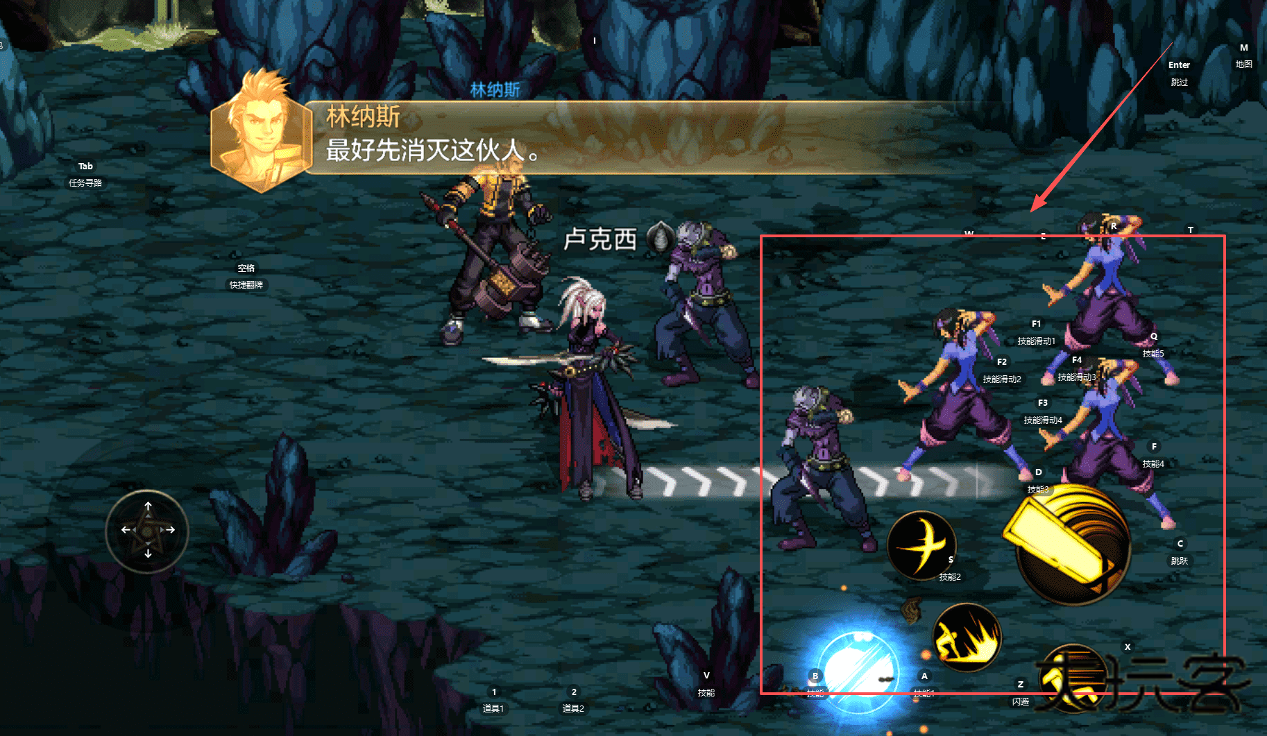 4、遇到多人副本时,比如林纳斯和卢克西同时在场,根据提示“最好先消灭这伙人”。