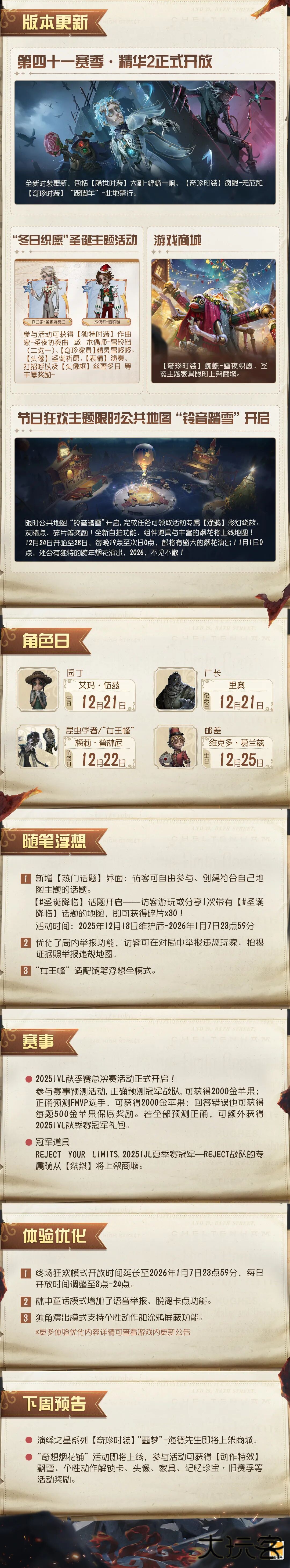 为保证庄园的稳定运行,【第五人格】将于周四上午07:30进行不停服维护。
