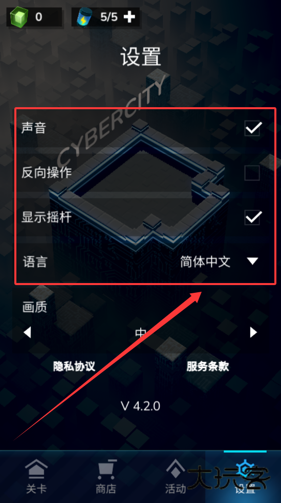 2、但下方标有隐私协议与服务条款的入口,版本显示 V 4.2.0,建议在调整前先查看相关条款,避免后续使用产生疑问。